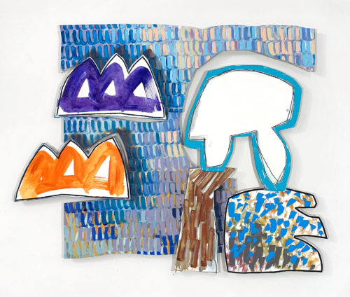 Justine Hill’s work explores the boundaries of abstract painting with her unique approach to form and mark making. She styles her paintings on shaped wood panels wrapped in canvas. Hill began to work with this process in 2015 when she was questioning the circumscribed boundary of the single rectangle for a painting. The way Hill chooses to arrange the pieces, how the shapes relate to one another, and the negative spaces within and around them, are all essential to the work.